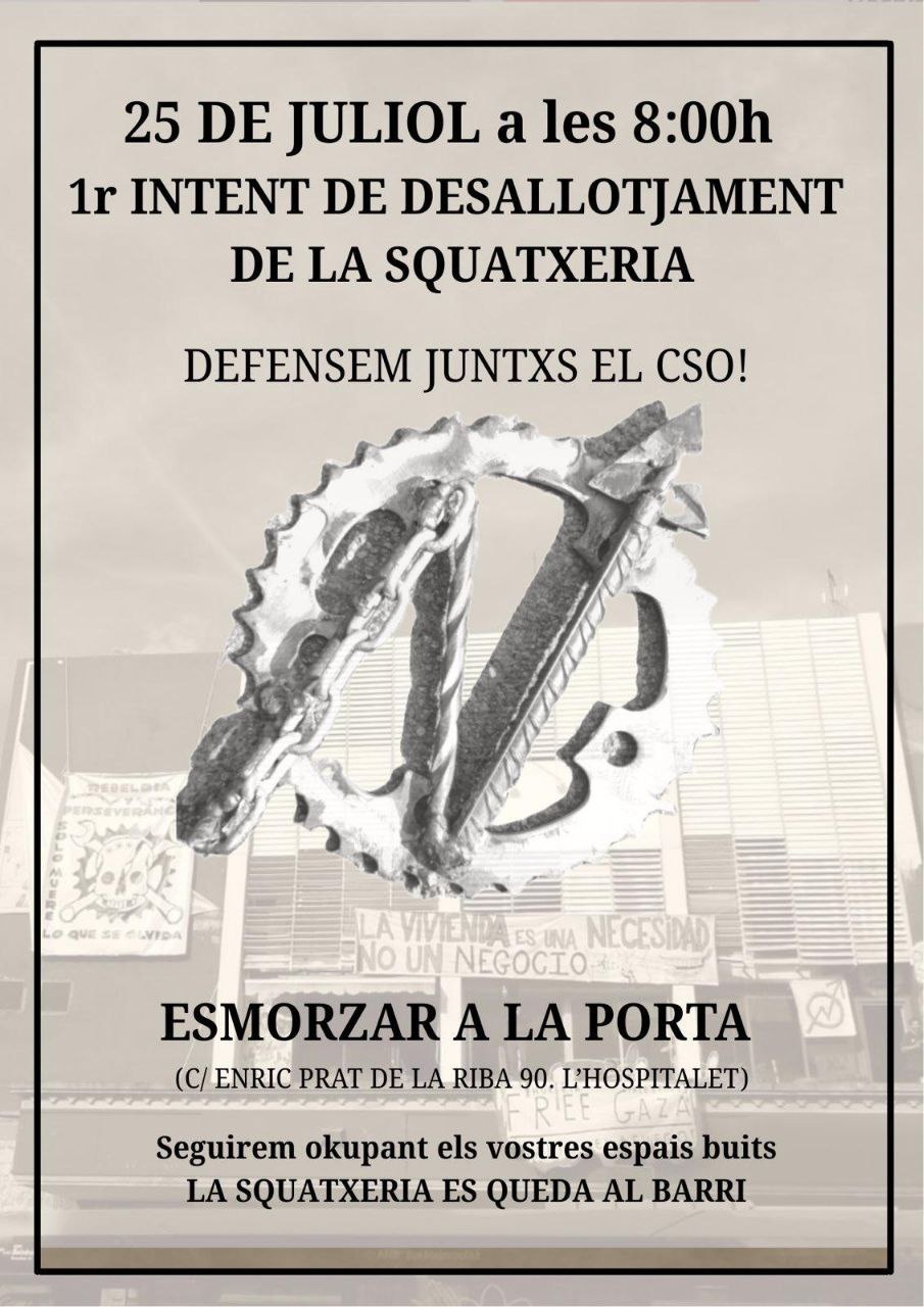 Ante esta ofensiva, vamos a resistir hasta el final para reivindicar nuestra lucha y nuestras maneras de hacer y estar en este mundo. Nos oponemos al desalojo como acto de resistencia hacia la propiedad privada y todo el sistema que lo legitima. Invitamos a toda la gente que participa, disfruta y le importa el CSO La Squatxeria a juntarse con nosotres para hacer frente a este ataque y resistir juntes. Pase lo que pase, La Squatxeria no será un final. Seguiremos okupando todos vuestros espacios vacíos, luchando por un mundo más justo.