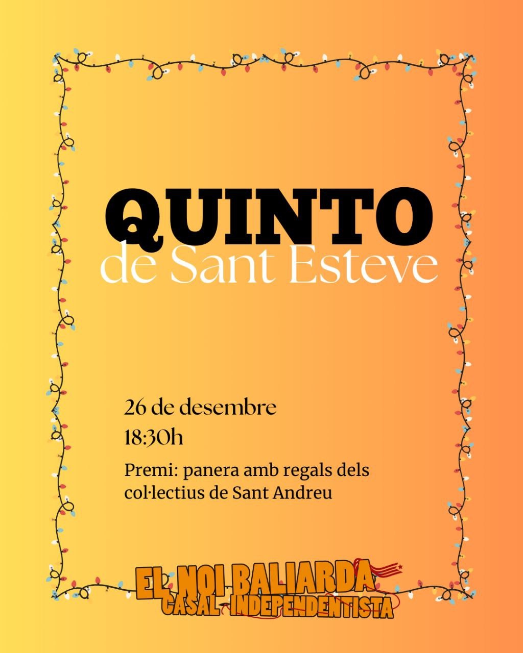 Obrirem a les 18h i a les 18:30h començarà el Quinto més esperat de l'any, el de l'autogestió del Casal.