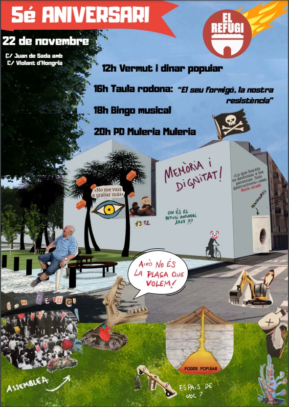 Qui ens anava a dir quan vam alliberar el solar que cinc anys després seguiríem aqui, habitant i dinamitzant la plaça que volem! Davant d'un plà urbanístic que vol eliminar el racó més genuí i autèntic del barri, ens plantem i ens quedem oferint una alternativa d'espai de joc i zona verda on enfortir vincles veïnals i crear vida comunitària. 🫂❤️