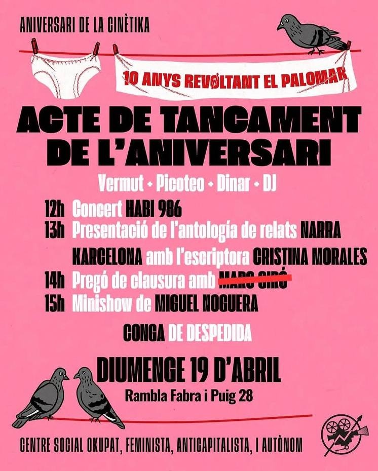 Vine a la conga de comiat i celebrar els 10 anys de resistència de La Cinètika!