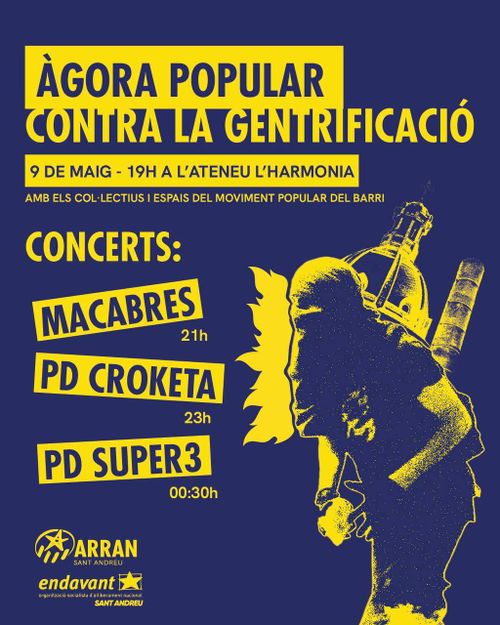 En el marc de les Festes de la Primavera de Sant Andreu, Endavant i Arran organitzem una Àgora popular contra la gentrificació.