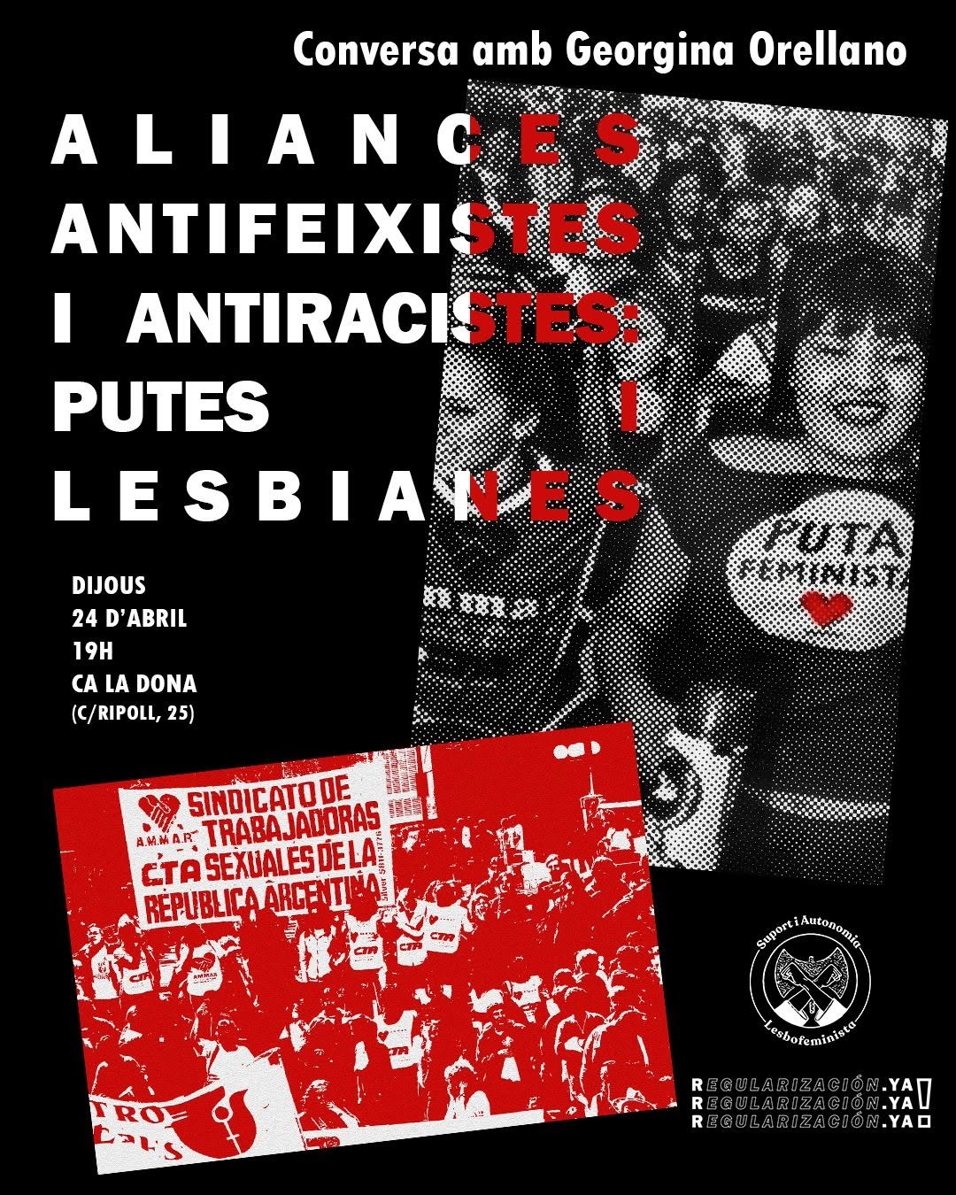 Tenim el plaer de rebre novament a Barcelona a la Georgina Orellano, secretària general del Sindicat de Treballadores Sexuals AMMAR i una figura clau en la lluita feminista a l’Argentina. En aquesta trobada, volem dialogar sobre l’aliança històrica entre putes i lesbianes en la resistència contra l’extrema dreta, el feixisme, els discursos anti-drets i la hipocresia de la doble moral.