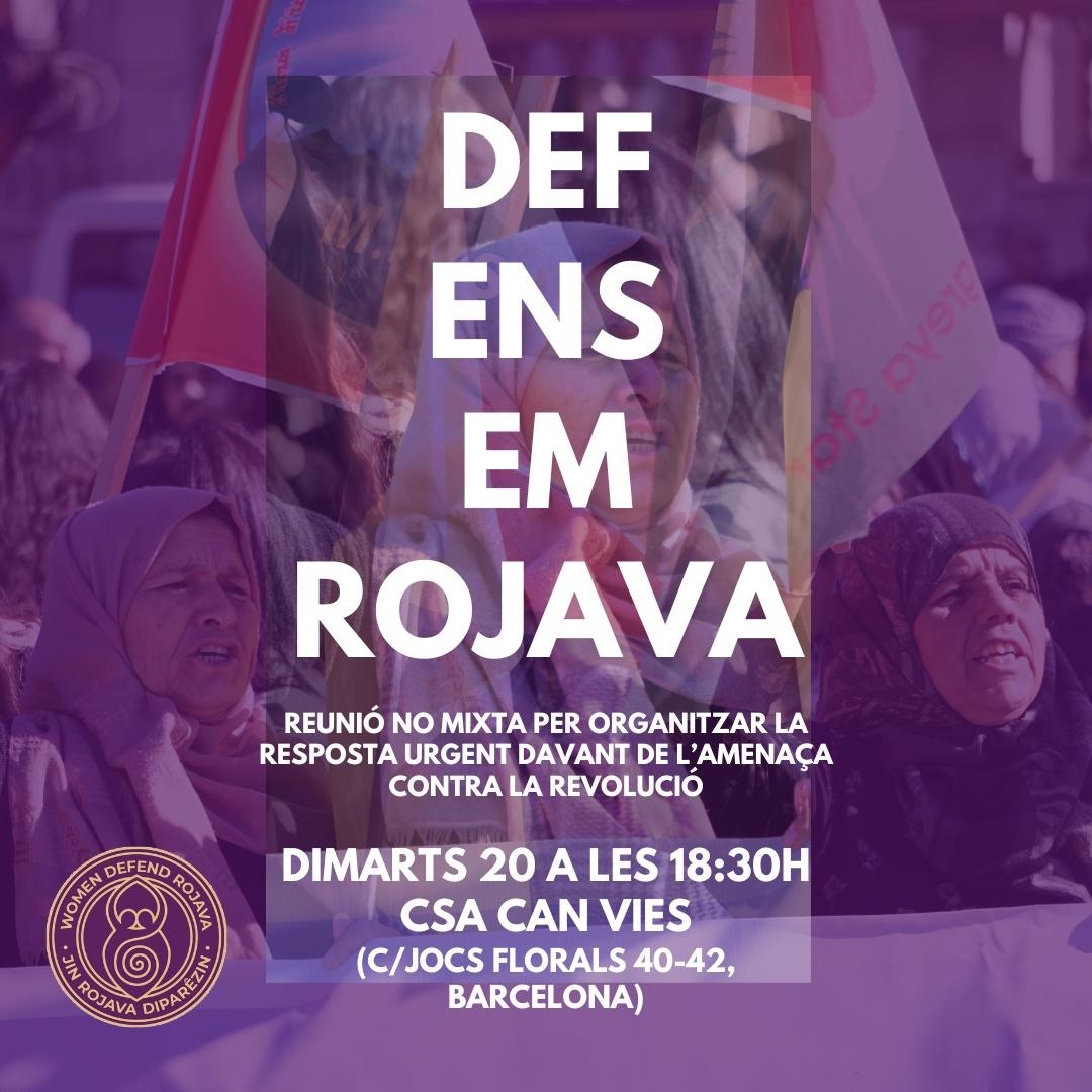 Per això us convoquem demà a una assemblea no mixta, per organitzar-nos dones i identitats dissidents per sortir al carrer a defensar Rojava. A més a més, us demanem que feu difusió de la convocatòria tant personalment com per xarxes socials.