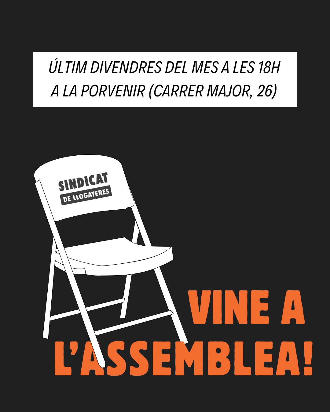 Si et volen pujar el lloguer, no et renoven el contracte, no t’arreglen els desperfectes, no et volen tornar la fiança, o tens qualsevol altre conflicte amb la propietat, vine a l’assemblea i organitza’t!