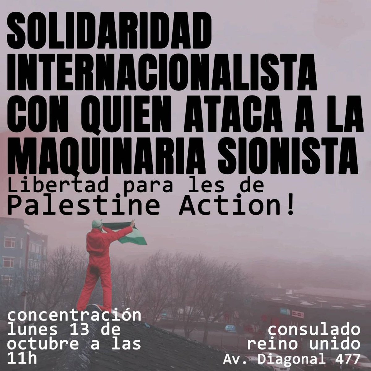 El 13O nos concentraremos en las puertas del consulado Británico para mostrar nuestro apoyo a Palestine Action y a la acción directa contra la industria de guerra y la entidad sionista.