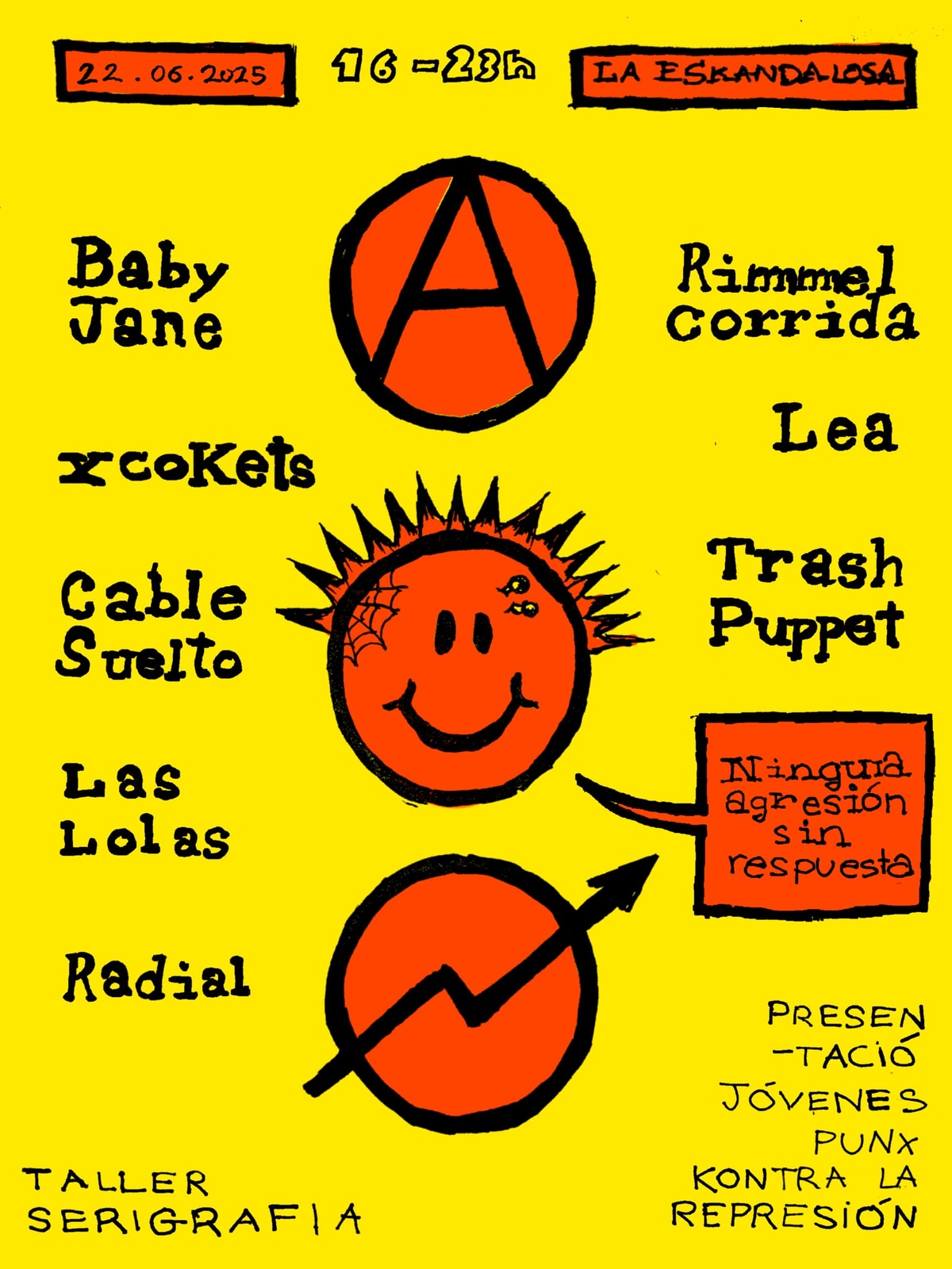 🔴Aquest cop les eskandalouses us proposem una tarda de punk i serigrafia per presentar el col·lectiu Joves Punk Contra la Repressió, tota la pasta recaptada per fins antirrepre, tu saps amor, coses de ser okupes malvadis.