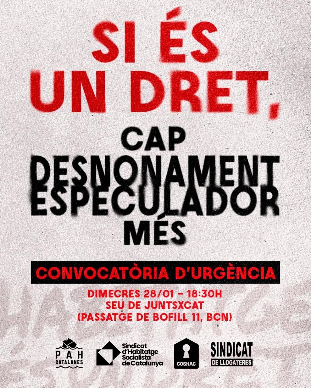 ✊ Convocants: PAHs Catalanes, Sindicat d'Habitatge Socialista de Catalunya, Confederació Sindical d'Habitatge de Catalunya i Sindicat de Llogateres de Catalunya