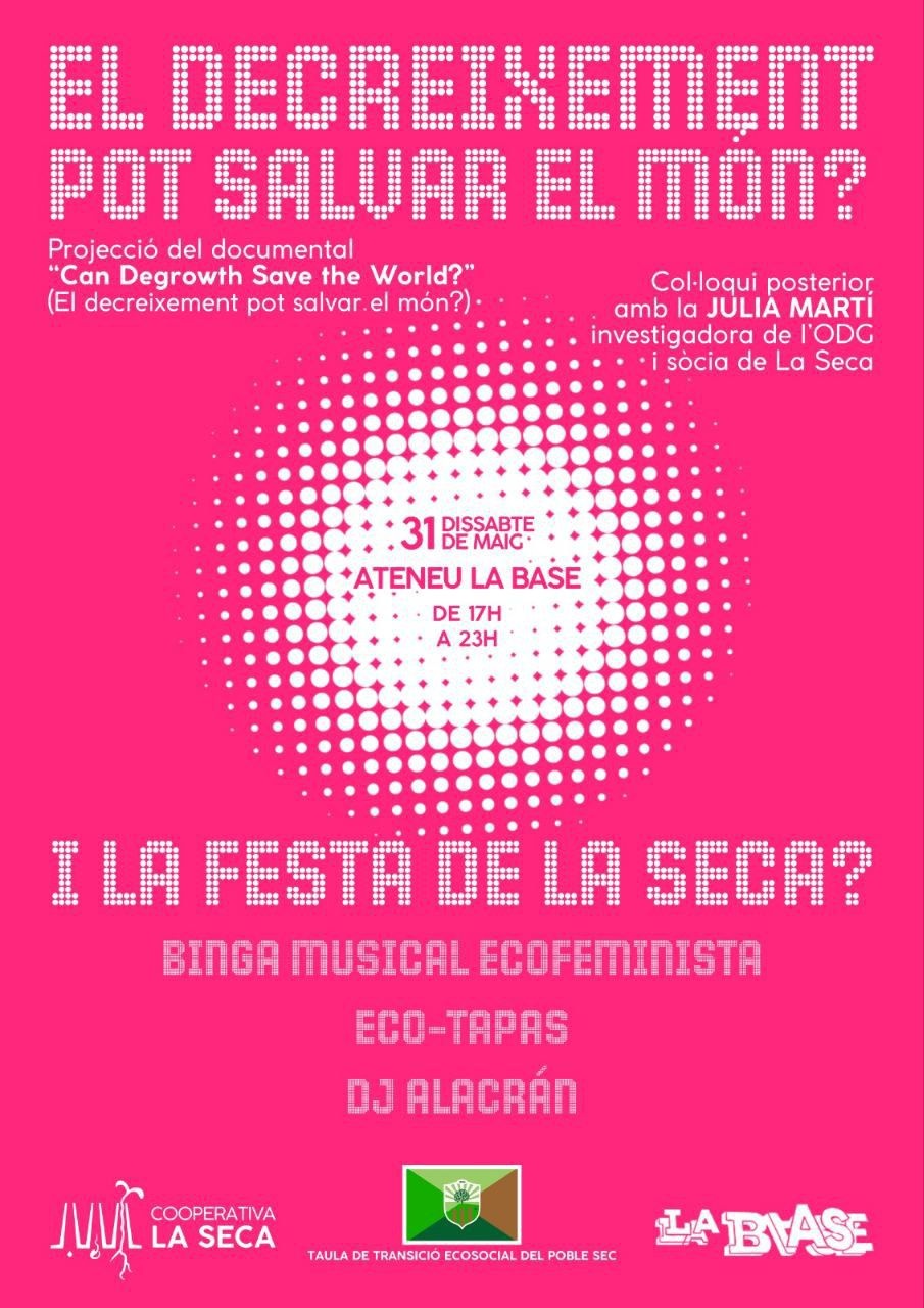 La Seca, cooperativa de consum agroecològic, autogestionada i assembleària, organitza la projecció d’un documental sobre decreixement, seguida d’una xerrada amb la Júlia Martí, investigadora de l’ODG i sòcia de La Seca.
