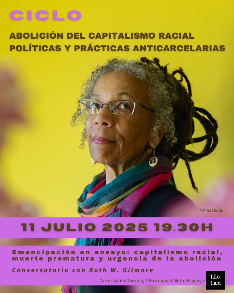 Os invitamos a participar en el 8. conversatorio: Emancipación en ensayo: capitalismo racial, muerte prematura y urgencia de la abolición, con Ruth W. Gilmore, el viernes, 11 de julio de 2025, a las 19.30hs, en t.i.c.t.a.c., C/Santa Dorotea 9, Barcelona.