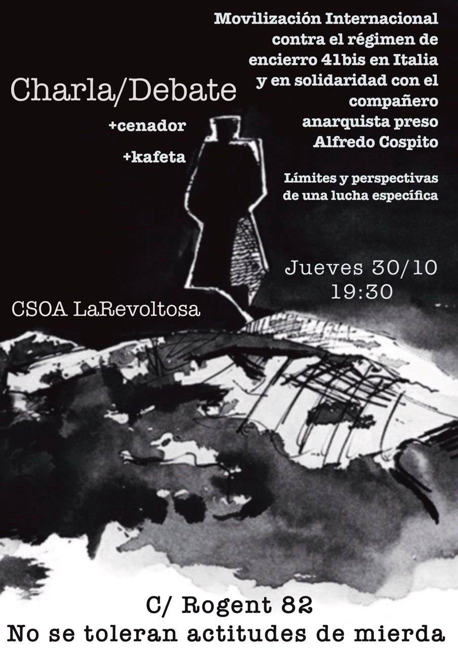 Movilización Internacional contra el régimen de encierro 41bis en Italia y en solidaridad con el compañero anarquista preso Alfredo Cospito.