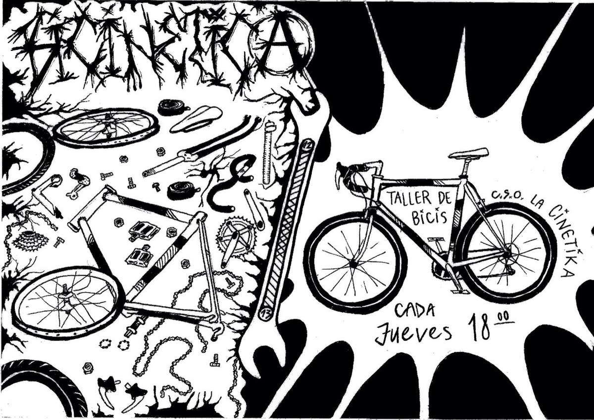 Cada dijous de 18h a 21h, trobareu obert el taller de bicis de La Cinètika, entrant a mà dreta.