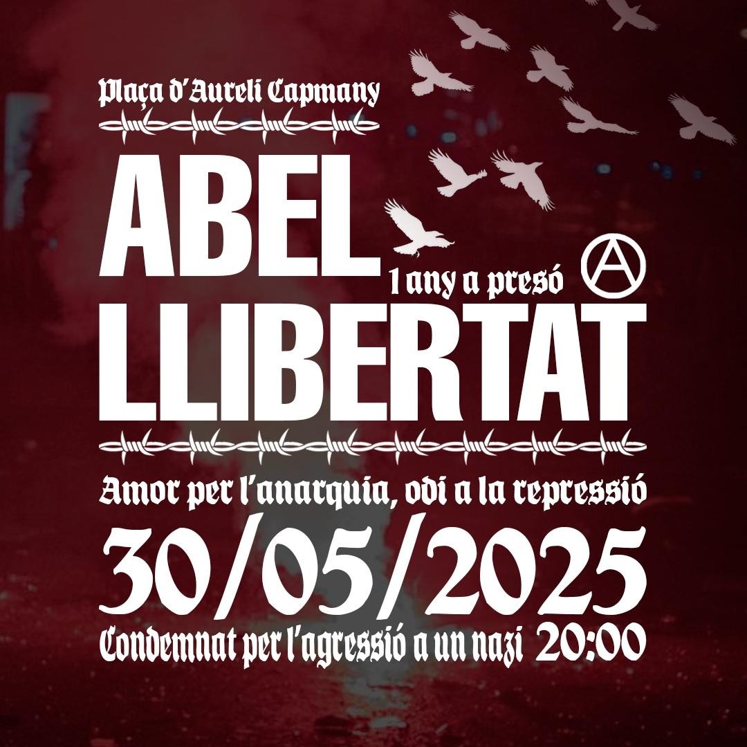 🤬 El 30 de maig de 2025, el company anarquista #LlibertatAbel portarà 1 any segrestat al CP de Brians 2, condemnat per l'agressió a un nazi al 2018. Un any de reclusió, xantatge i maltracte però també de solidaritat i de resistència envers el seu sistema de domesticació.