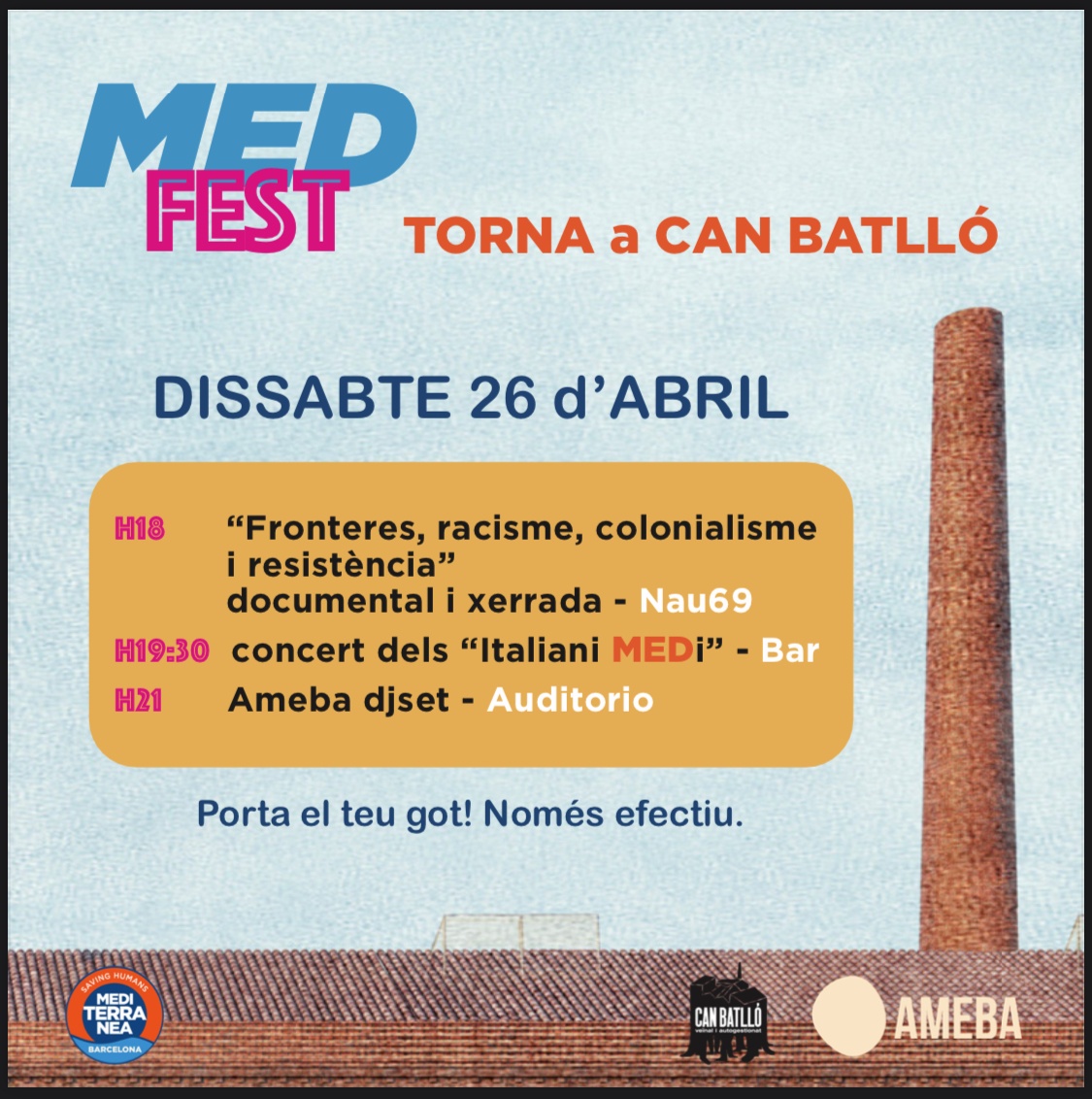 📅 El 26 d’abril el MedFEST torna a Can Batlló per compartir una tarda/nit plegats!