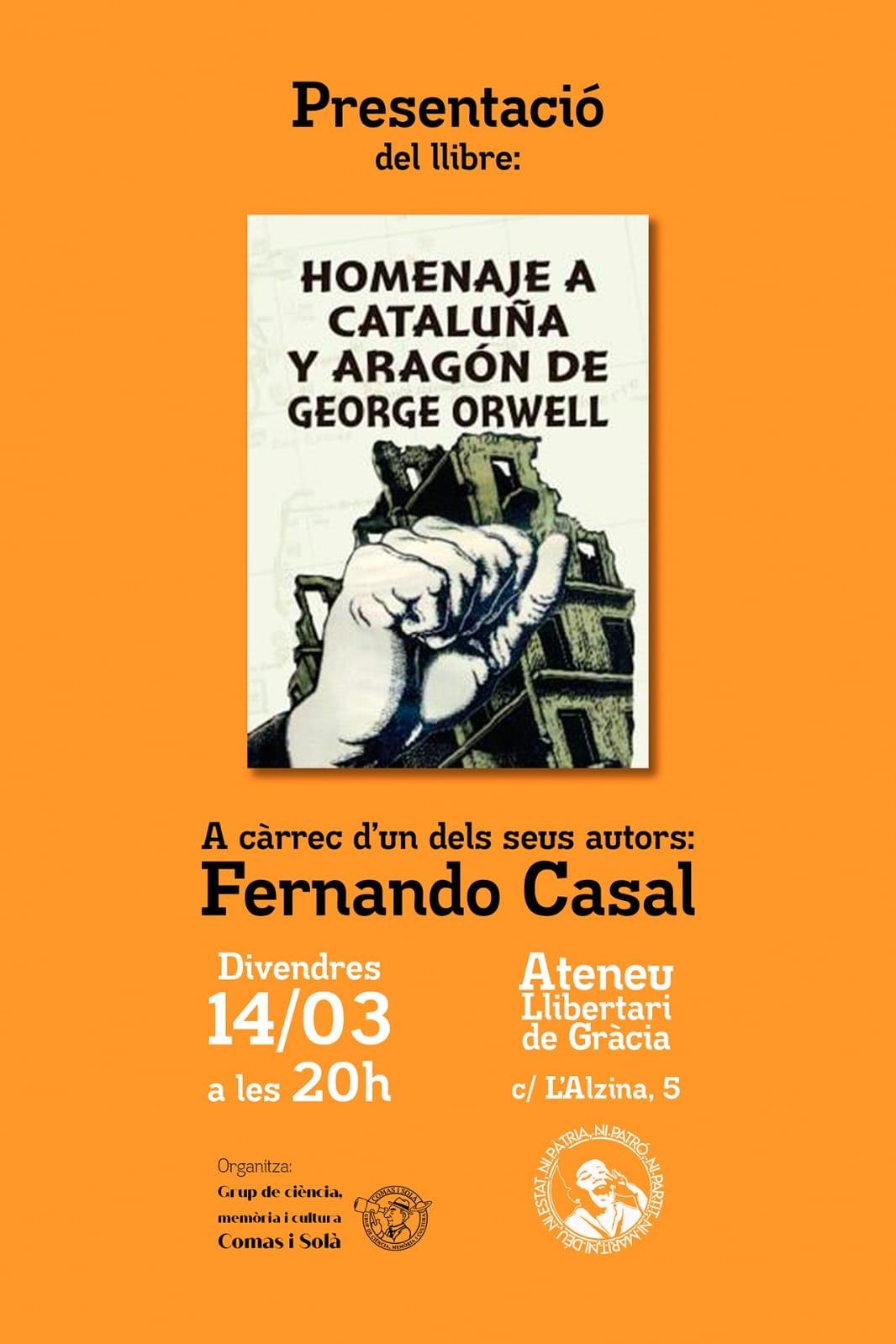 Presentació del llibre HOMENAJE A CATALUNYA Y ARAGÓN DE GEORGE ORWELL