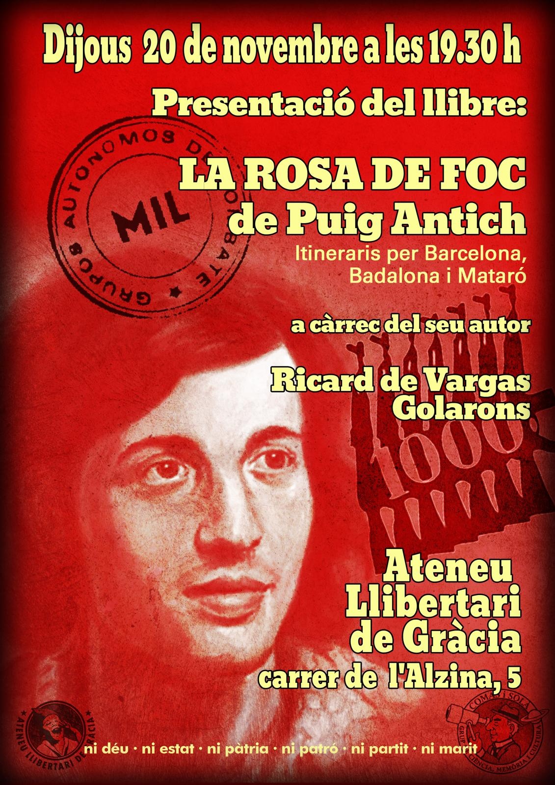 Presentació del llibre: LA ROSA DE FOC DE PUIG ANTICH, Itineraris per Barcelona, Badalona i Mataró.