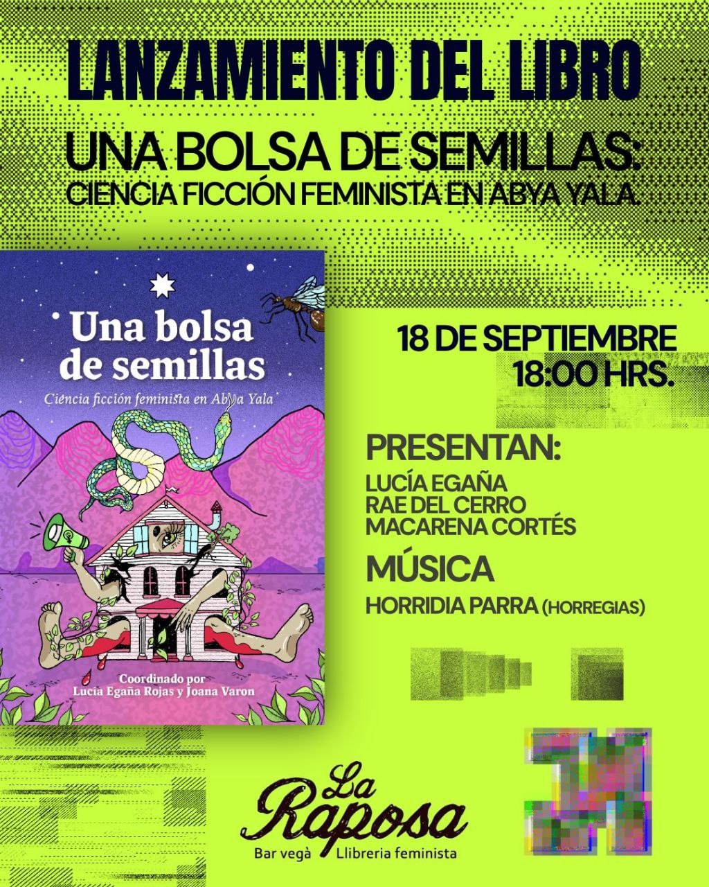 💥 El próximo jueves 18 de septiembre a las 19 horas les invitamos a la presentación de la antología "Una bolsa de semillas. Ciencia ficción en Abya Yala" con la presencia de Lucía Egaña Rojas (coordinadora del libro), Rae del Cerro (dramaturga, lesbiana y autora de uno de los relatos) y Macarena Cortés @laviajeradeltiempo (investigadora de ciencia ficción latinoamericana y editora). Tras la presentación Horridia Parra @horridiaparra @horregias interpretará algunas canciones de su repertorio.