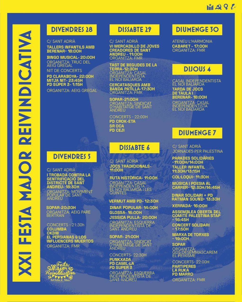 Us presentem tota la programació de la XXI Festa Major Reivindicativa de Sant Andreu de Palomar! 💙💛