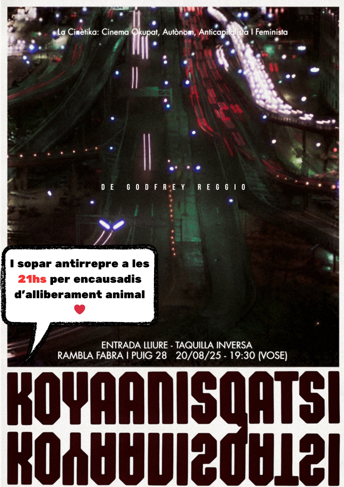Projecció a les 19.30hs i sopar antirrepre a les 21hs per encausadis d’alliberament anima