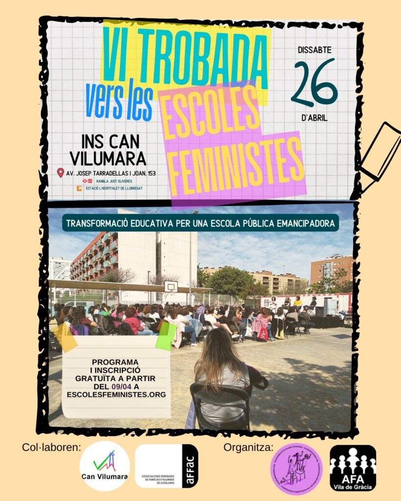 Dissabte 26 d’abril de 2025 celebrarem la Sisena trobada vers les escoles feministes, una proposta educativa que busca la transformació social, l’emancipació de les persones i tornar a posar la vida al centre des de i per a l’escola pública.