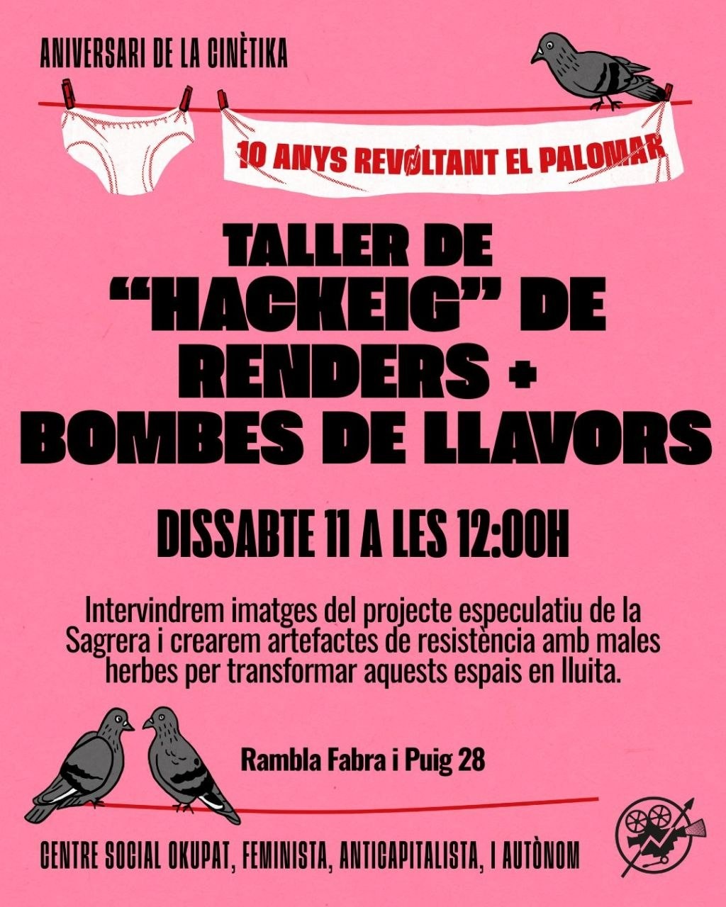 Farem un Taller de hackeig de renders + bombes de llavors de promocions urbanístiques de la Sagrera. Amb Memòria, lluita i resistència i Reacción Semillera.