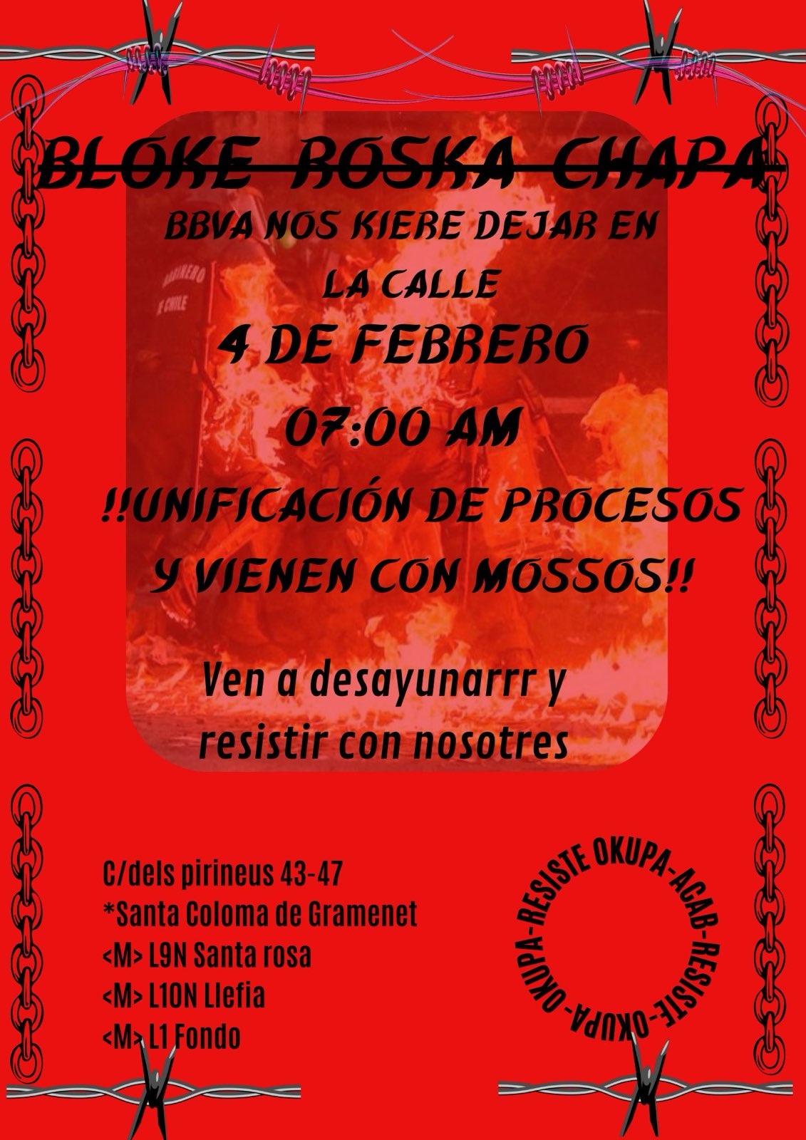 El día 4 de febrero a las 7 A.M. El BBVA ha unificado los procesos de los pisos y ha solicitado Mossos.