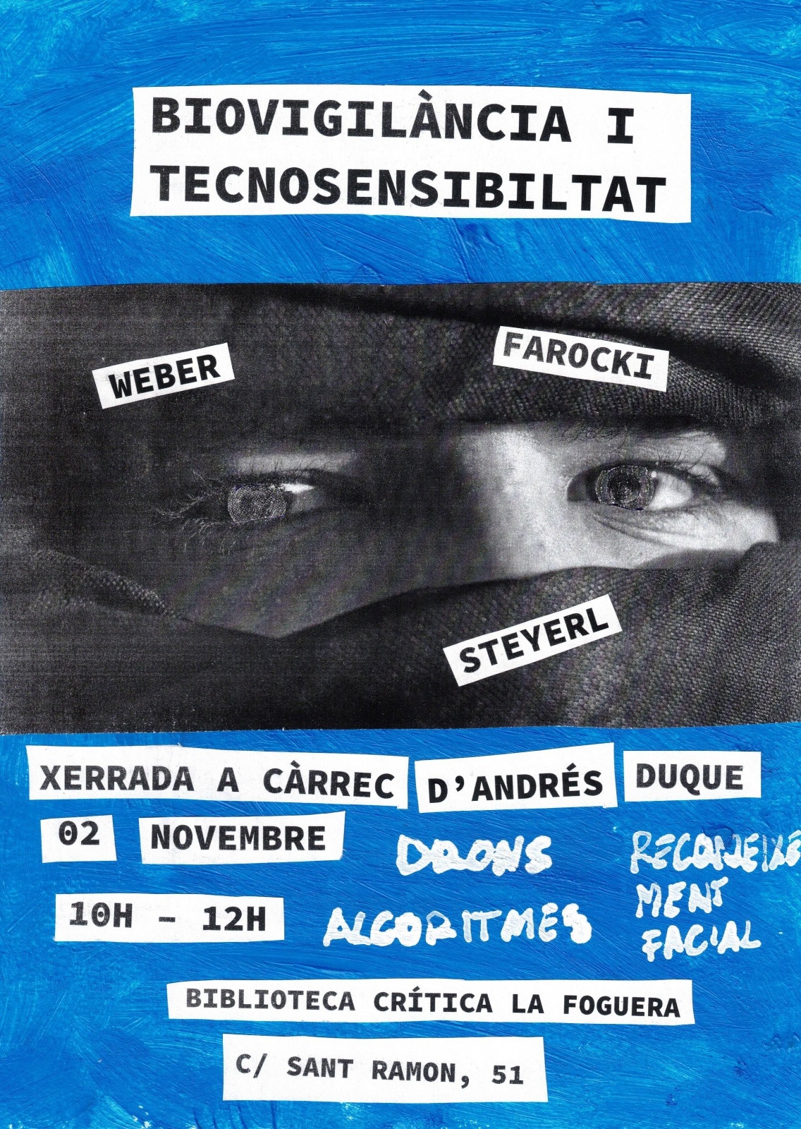 El cineasta i professor Andrés Duque, col·laborador de La Foguera, ens guiarà a través de les obres de Harun Farocki, Hito Steyerl i Éléonore Weber, tres mirades crítiques sobre el poder de la imatge i les seves possibles resistències.