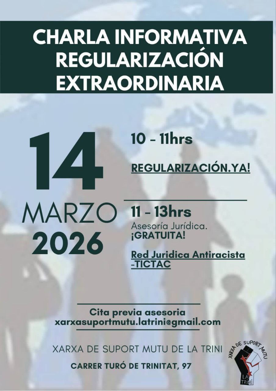 Xerrada informativa sobre la regularització extraordinària + Assessoria gratuïta