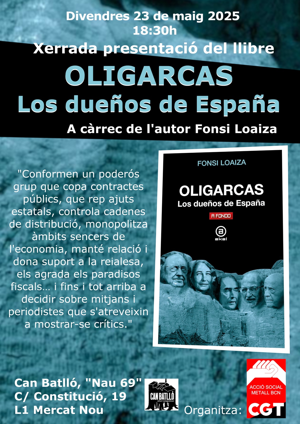 Xerrada presentació del llibre📕: “Oligarcas, los dueños de España” a càrrec de Fonsi Loaiza