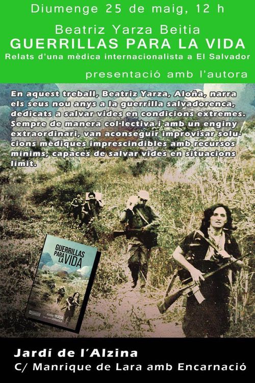 Presentación libro, GUERRILLAS PARA LA VIDA, relatos de una médica internacionalista en El Salvador Sunday, May 25, 12:00 PM-01:30 PM Sunday 25 May 13:30 Jardí de L'Alzina c/ Manrique de Lara GràciapresentacióLlibre