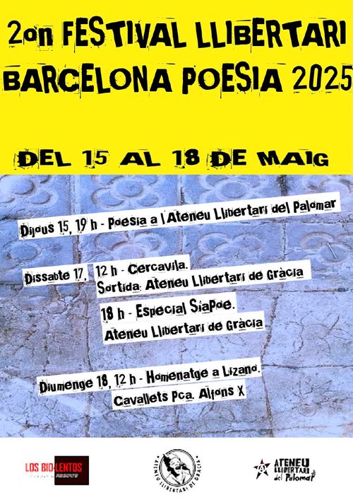 Festes Llibertàries 2025 st.Andreu del Palomar Friday, Nov 28, 07:00 PM Ateneu Llibertari del Palomar 11, Carrer del Pare Secchi, Sant Andreu de Palomar, Barcelona, 08030 SantAndreuclub de lecturafestes llibertàries