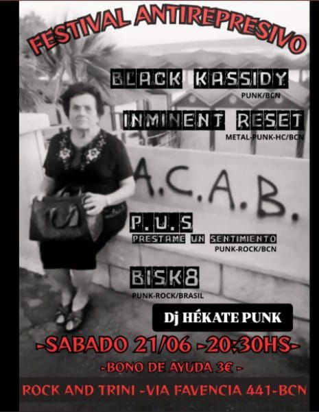 Festival Antirepresivo Saturday, Jun 21, 08:30 PM-03:00 AM Sunday 22 June 03:00 Rock and Trini Vía Favencia, 441, Barcelona