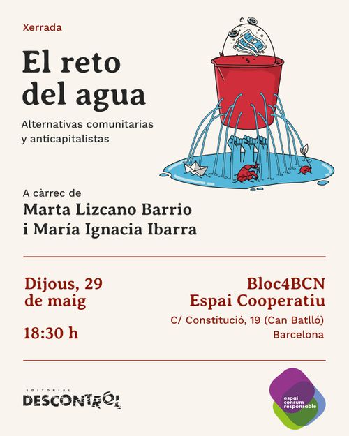 Charla El reto del agua: Alternativas comunitarias y anticapitalistas Thursday, May 29, 06:30 PM Bloc4 Carrer de la Constitució, 19, 08014 Barcelona aiguaanticapitalismeecologismegestió comunitària