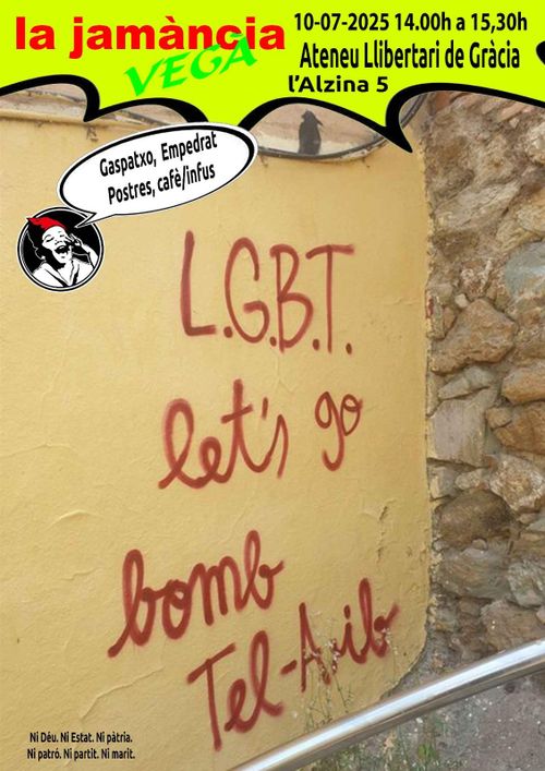 Menjador: La Jamancia Thursday, Oct 30, 02:00 PM-04:00 PM Thursday 30 October 16:00 Ateneu Llibertari de Gràcia 5 B2, Carrer de l'Alzina, Gràcia, Barcelona, 08024 GràciaautogestiódinarVegà